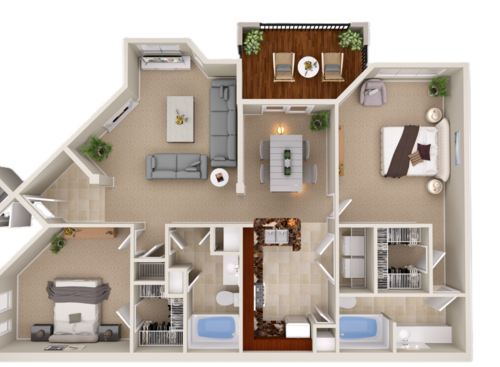 There’s room to spare in our elegant two bedroom apartments. Two oversized, walk-in closets, a private balcony or patio, the convenience of washer and dryer hook-ups and more make your new apartment so nice to come home to.