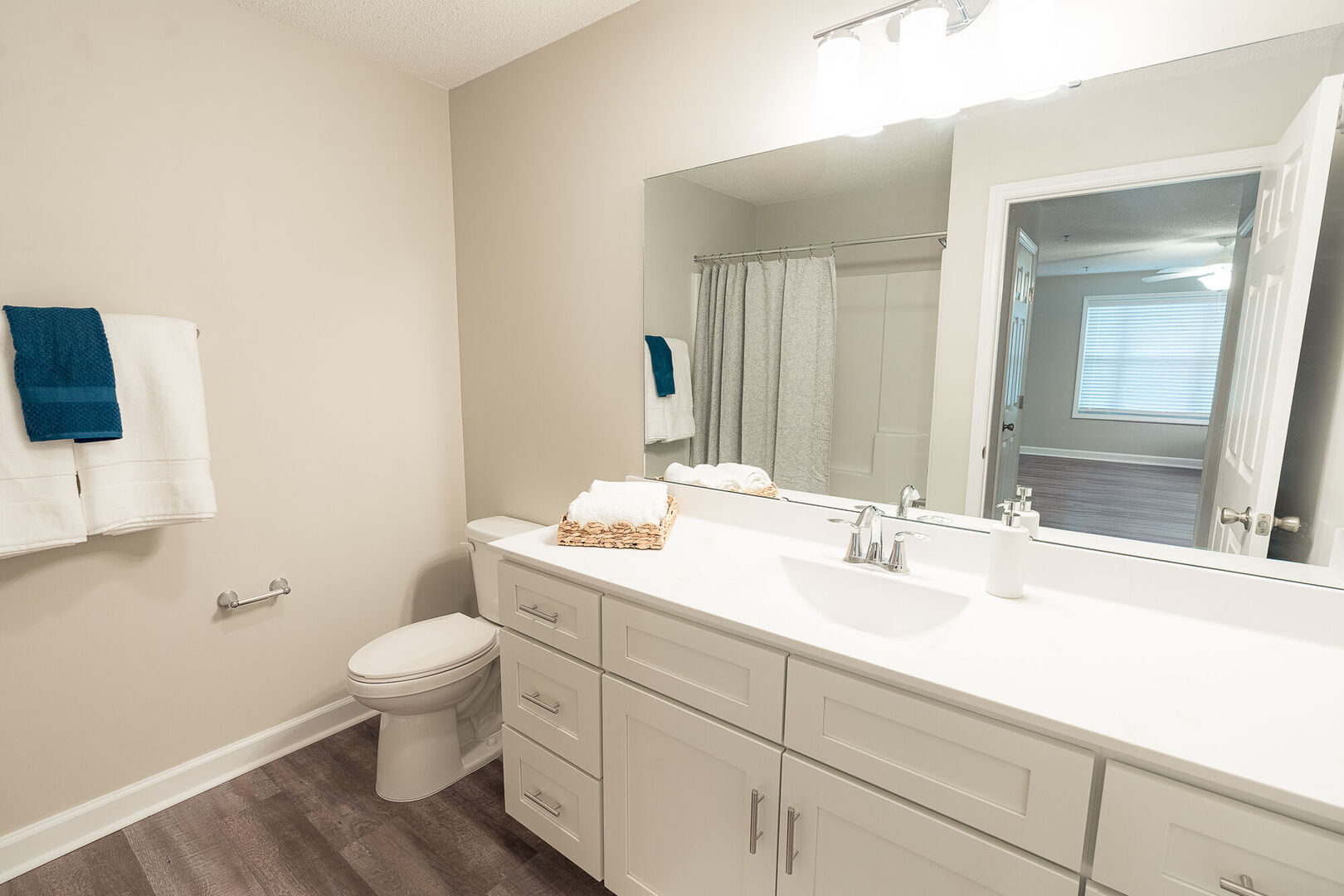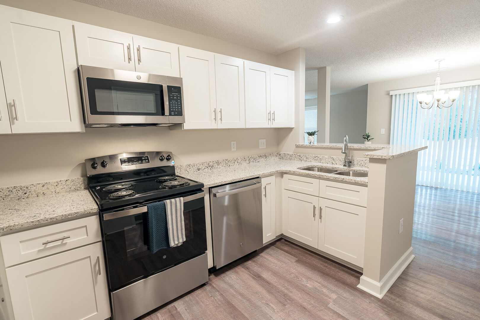 Our 2 bedroom 2 bath apartment with a modern touch. These homes have been renovated to include updated cabinetry, real granite countertops, stainless steel appliances, brushed nickel finishes, and luxury vinyl plank floors in living areas with rich carpeting in the bedrooms.